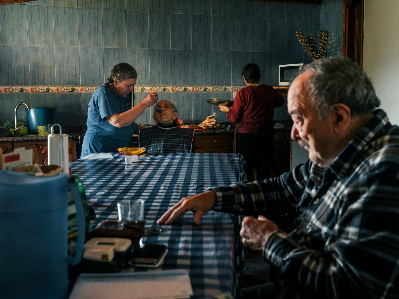 El origen del proyecto es íntimo. Su abuela, viuda y sola en una aldea cercana a la ciudad, cayó una mañana fría y húmeda. Permaneció horas en el suelo hasta que una vecina la encontró. “Eso me amarró”, recuerda. A partir de entonces comenzó a recorrer territorios más alejados, algunos a apenas cien kilómetros en línea recta, pero a varias horas de distancia por carreteras montañosas. Empezó a fotografiar con mayor intensidad entre 2017 y 2018, y el proyecto se ha extendido hasta hoy.
