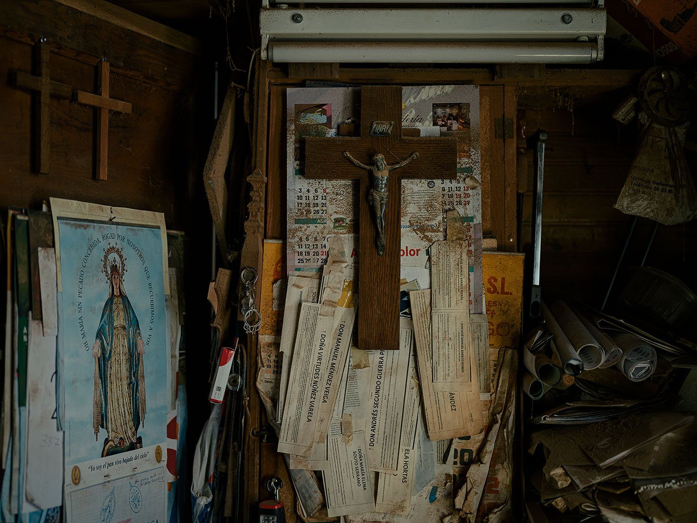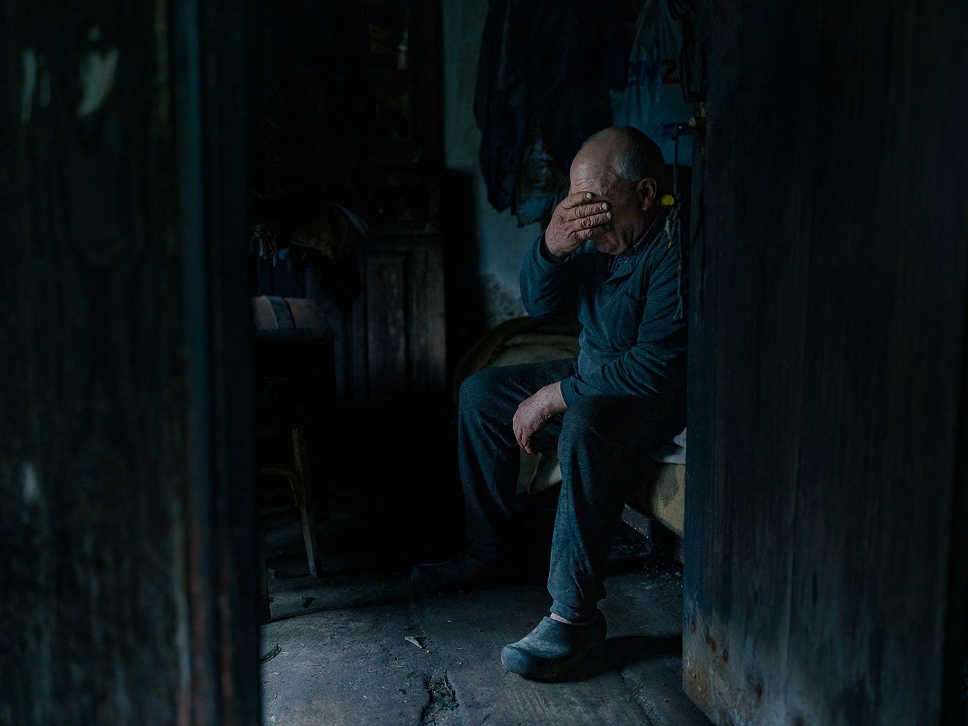The origin of the project is intimate. His grandmother, widowed and living alone in a village near the city, fell one cold, damp morning. She remained on the floor for hours until a neighbor found her. “That bound me to this,” he recalls. From then on, he began traveling to more remote territories — some barely one hundred kilometers away as the crow flies, yet several hours distant by winding mountain roads. He began photographing more intensely between 2017 and 2018, and the project has continued to the present.