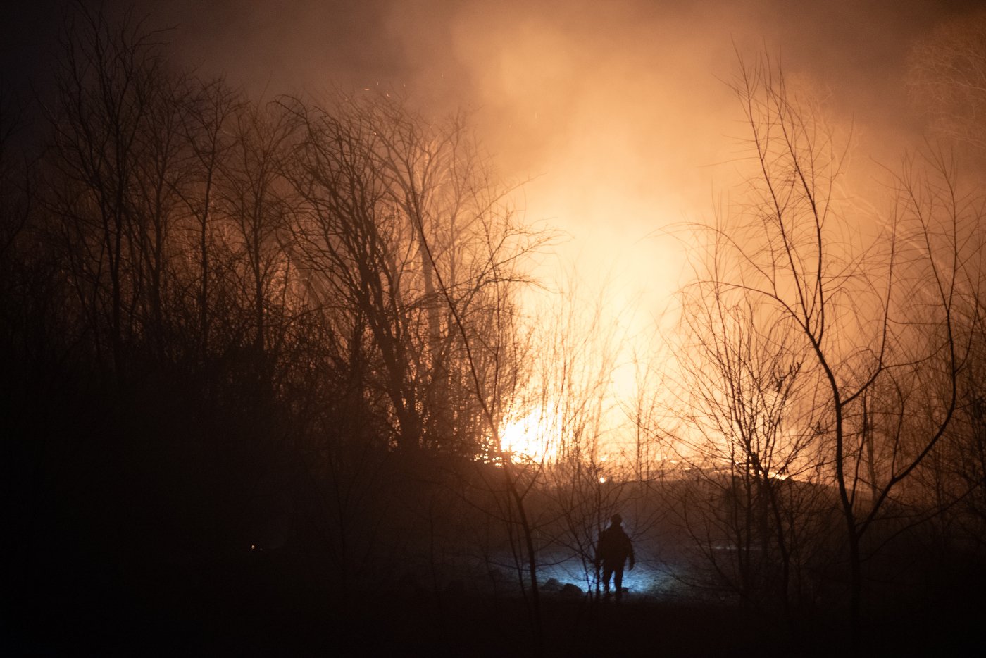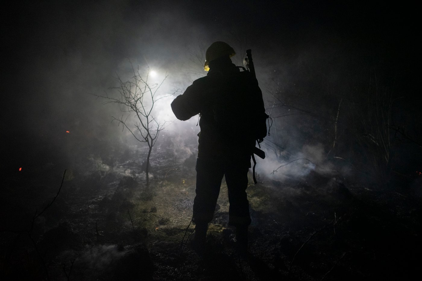 Después de que un incendio fuera fuera de control en Ascochinga (a 57 km de la ciudad de Córdoba) durante varios días en agosto de 2024, un miembro de la brigada forestal avanza por el campo para monitorear el frente del incendio y la topografía del terreno, con el fin de dirigir al resto del equipo en el combate directo. Solo en 2024, más de 93 000 hectáreas de bosque nativo ardieron en Córdoba. Los incendios provocados se utilizan como herramienta para despejar terrenos para su posterior desarrollo por parte de empresas inmobiliarias, agrícolas, ganaderas o mineras. En Argentina, cada dos minutos se destruye una hectárea de bosque, lo que equivale a 30 campos de fútbol por hora (Greenpeace, 2023).