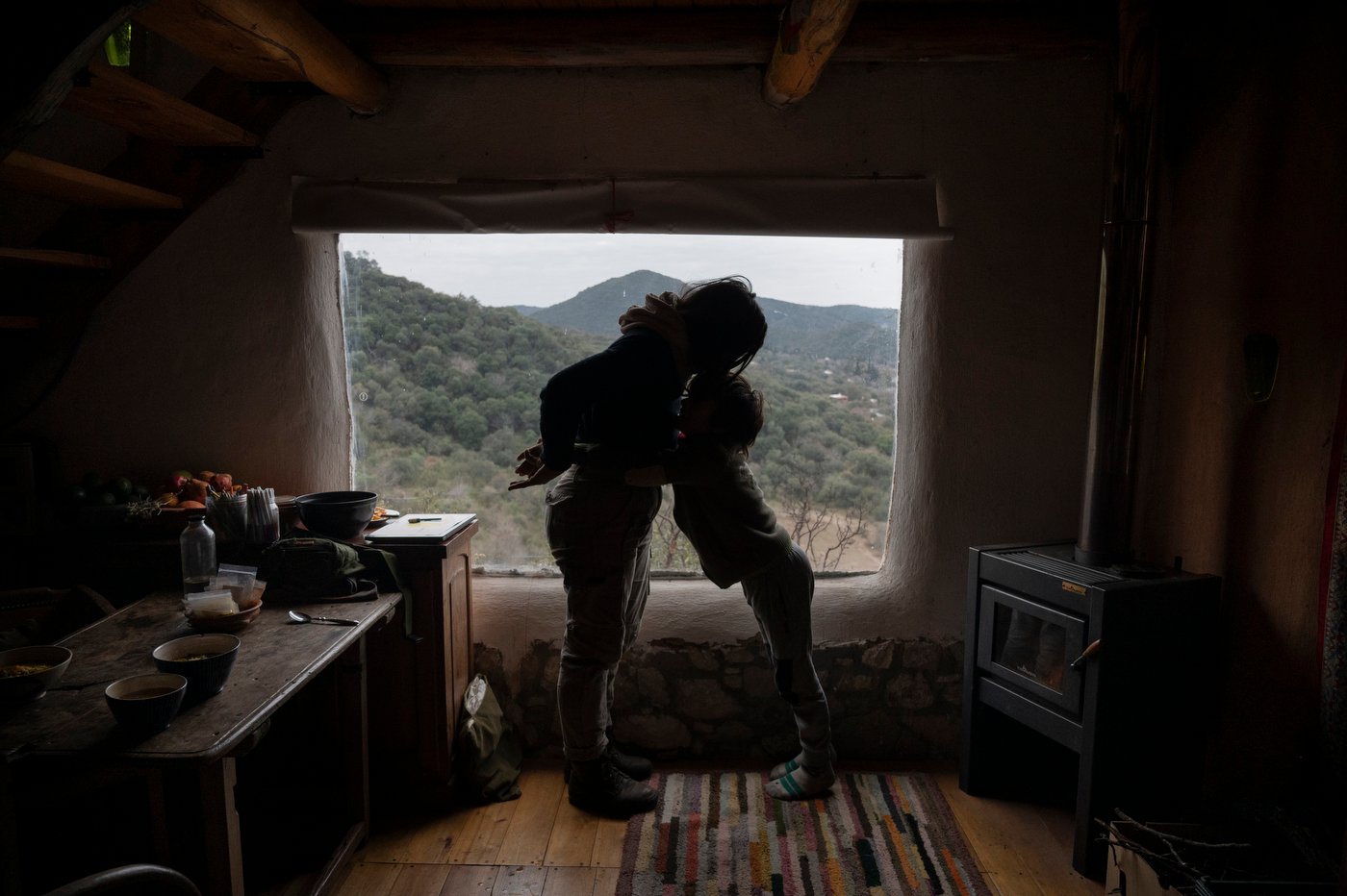 Una fría mañana de invierno, Victoria Prado, una integrante de Fuegas de 29 años, desayuna con su hijo Salvador, de nueve. La maternidad es un tema importante para las integrantes de Fuegas. A través de la ventana, pueden ver las verdes colinas de la Reserva Municipal de Aguas Recreativas Naturales Los Quebrachitos, de 5000 hectáreas, ubicada en la base oriental de la cordillera de las Sierras Chicas, en Córdoba.